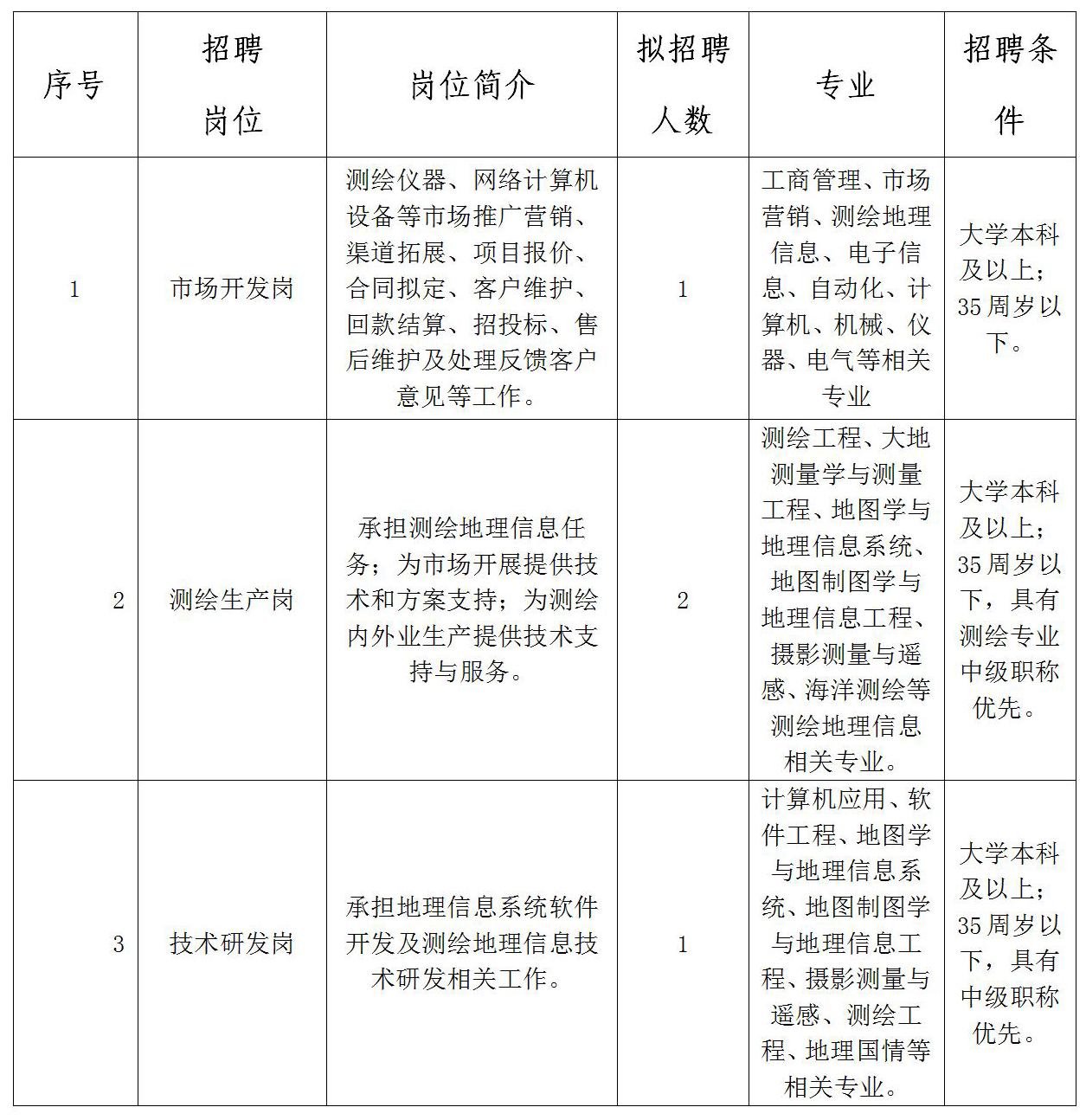 通過天津市測繪院有限公司門戶網(wǎng)站、微信公眾號等方式發(fā)布招聘公告,應聘人員通過公司郵箱進行報名。請應聘者將簡歷、學歷學位證書及認證報告、職稱證書等相關材料打包發(fā)送至tianjinjyxx@163.com,壓縮包命名為“所報崗位+姓名”,郵件投遞時間為2021年11月18日至2021年11月30日。(聯(lián)系人:舒濱 13802070752)。