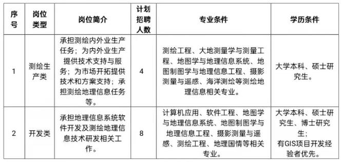 天津市測繪院有限公司 2022年春季公開招聘公告
