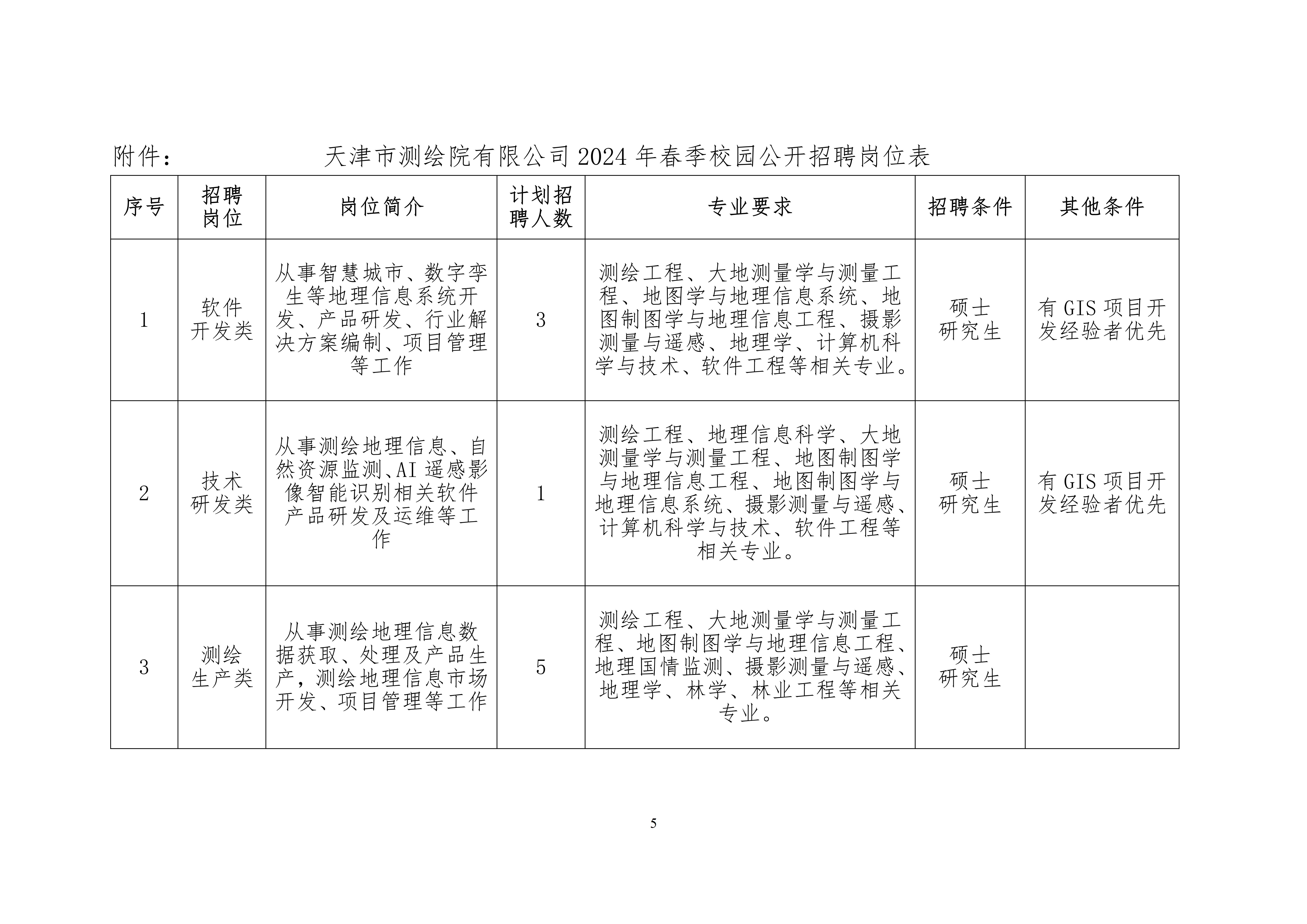 天津市測(cè)繪院有限公司2024年春季校園公開(kāi)招聘公告 2024-04-07